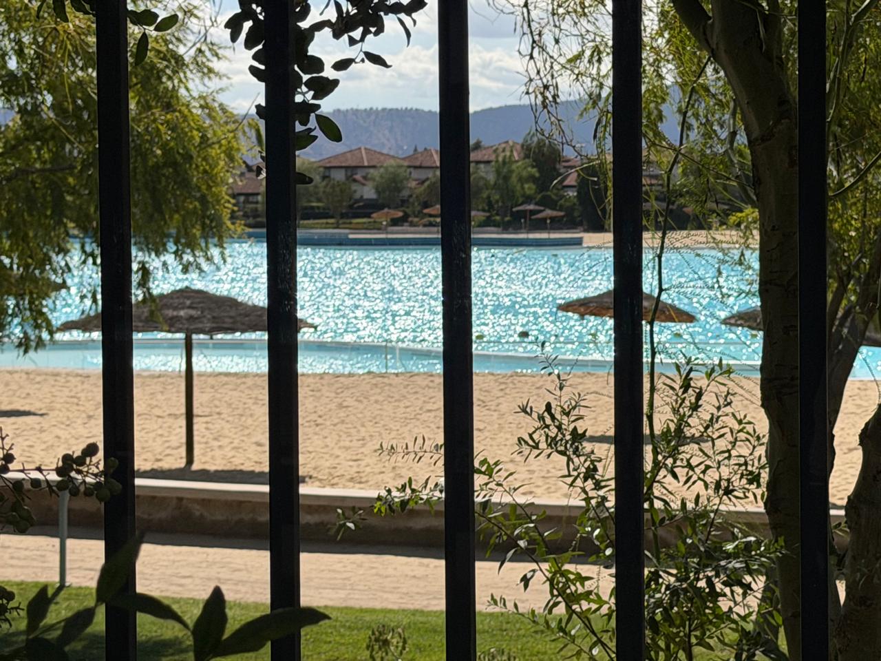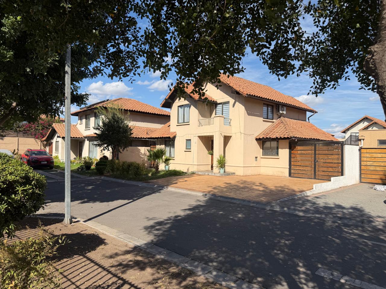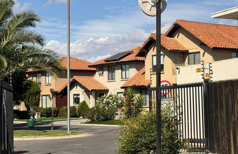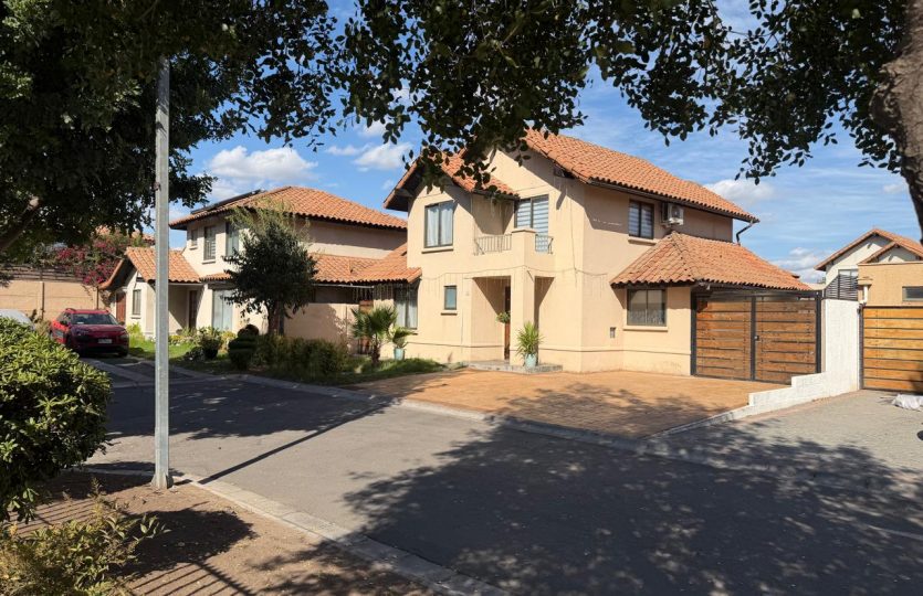 casa de dos pisos emplazada en Av Santa Herminia 1351 Condominio costanera en Laguna del Sol, la comunidad cuenta con acceso a laguna navegable, playa privada, salones multiuso, club house, juegos infantiles, multicanchas, estacionamientos de visitas, áreas verdes.