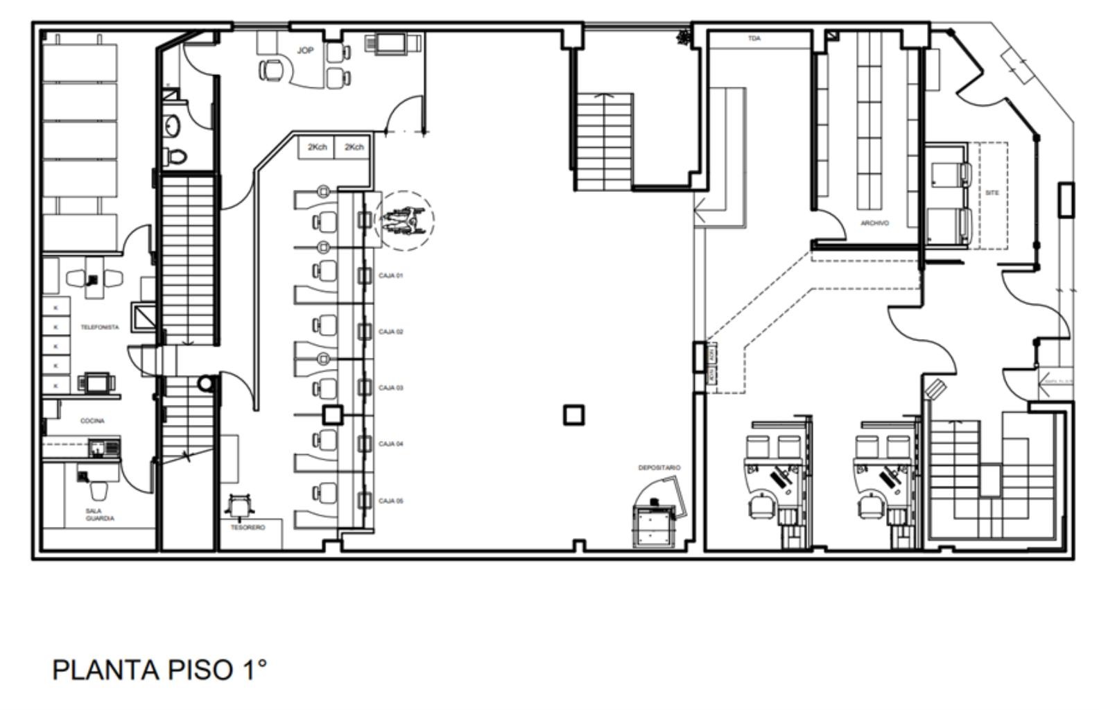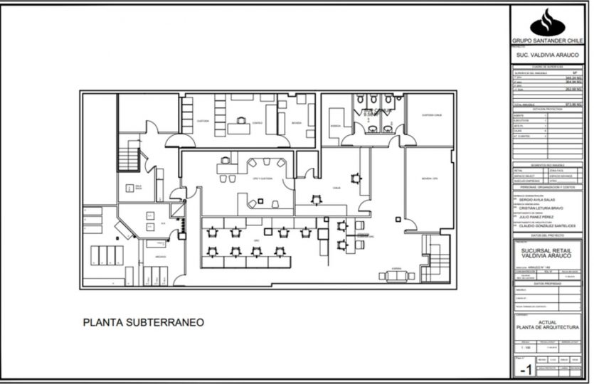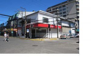 La propiedad esta emplazada en el centro de Valdivia en un entorno principalmente de uso comercial, en la esquina de dos calles principales de alto flujo, calle Arauco e Independencia. Con locomoción colectiva inmediata y a 100 metros de la plaza principal. Está compuesto de 3 niveles: en primer piso hall de acceso, mesón de atención a público, sector de cajas, cocina, comedor. Segundo piso 2 oficinas, baño, kitchenette, sala de espera público, sala de reuniones, cubículos de ejecutivos y subterráneo.